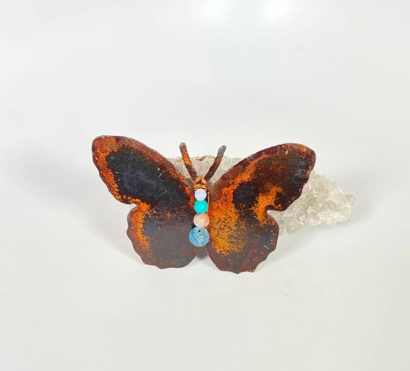 Butterflies are proudly made from upcycled metals in Canada and adorned with Jasper.