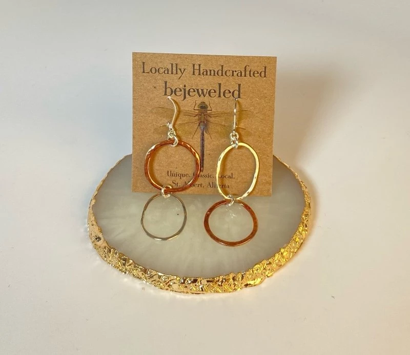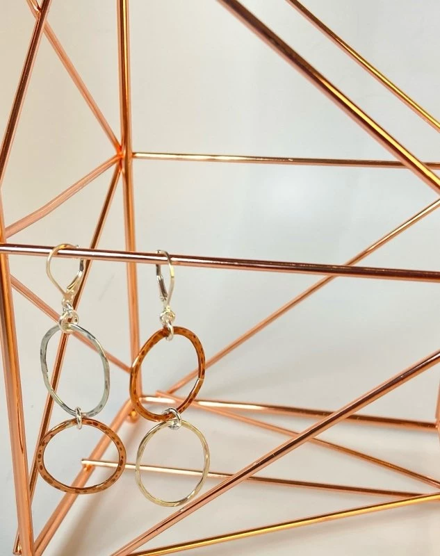 Handmade with care, these hammered mixed metal earrings and unique and funky!