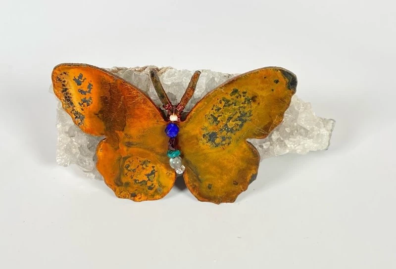 Butterflies are proudly made from up-cycled metals in Canada and adorned with Lapis Lazuli and Garnet crystals.
