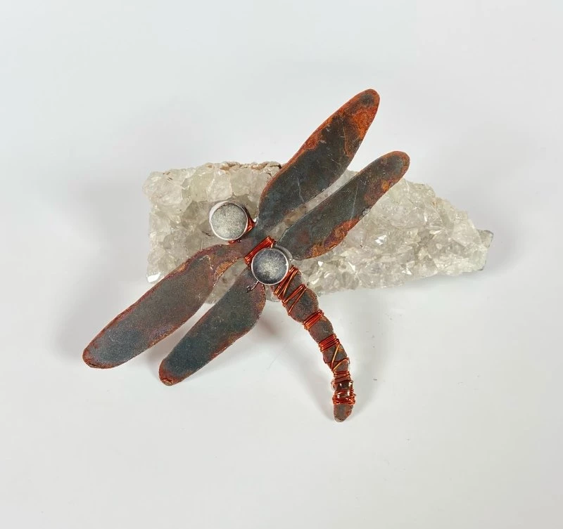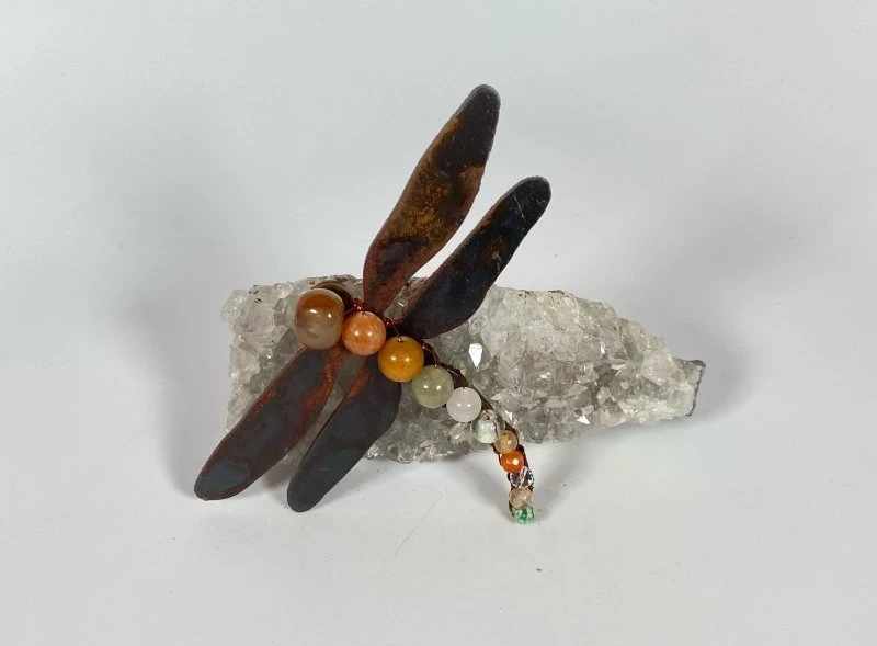 Dragonflies are proudly made from upcycled metals in Canada and adorned with semi precious stones.