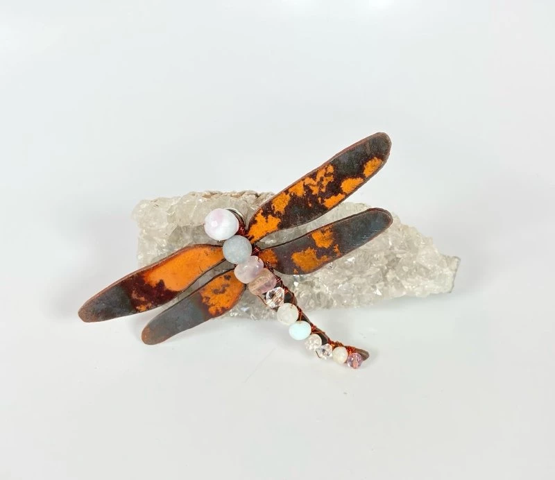 Dragonflies are proudly made from upcycled metals in Canada and adorned with semi precious stones.
