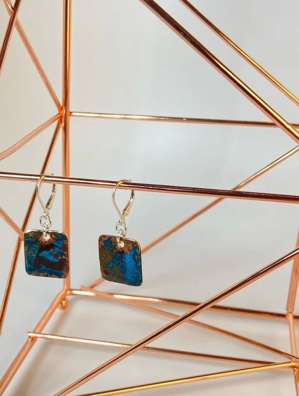 Handmade with care, these round Copper Patina Earrings are one of a kind!