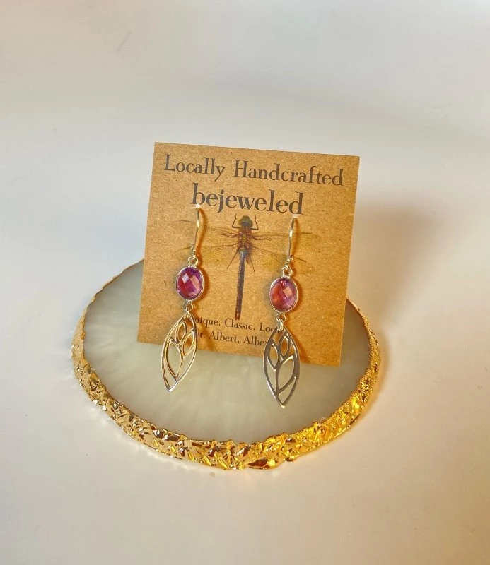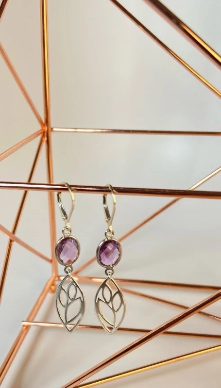 Handmade with care, these Sterling Silver leaf and Amethyst Earrings are long and delicate!