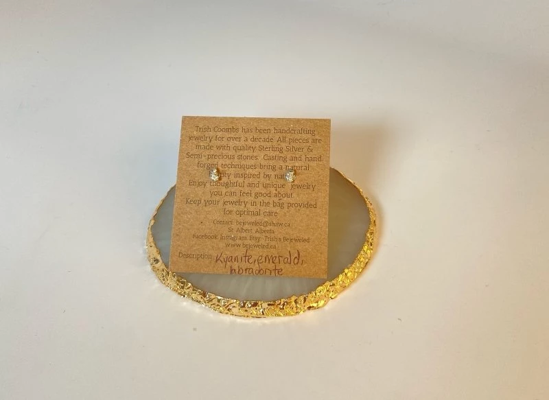 These lovelies have labradorite that crowns the kyanite. Sterling silver stud backs.