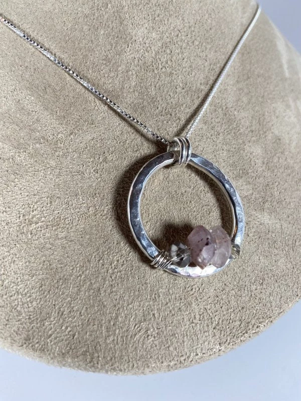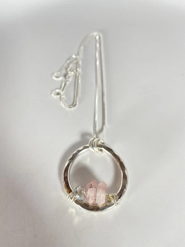 Handcrafted in Alberta and one of a kind, this classic design is adorned with Swarovski Crystals & Rose Quartz.