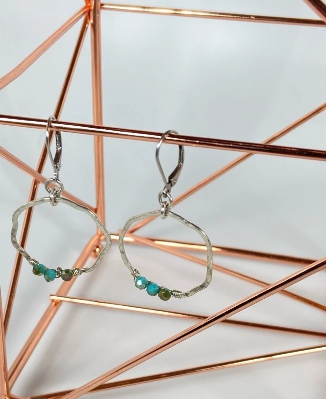 Handmade with care, these sterling silver earrings are hand hammered and are one of a kind! Glass crystals adorn the silver for some extra sparkle!