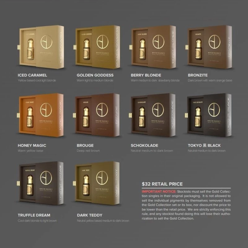 The Gold Collection by Brow Daddy x Perma Blend provides a great variety of ten colors. Some of them are pre-modified and some are neutral or cool based. This allows the artist to serve any client with any technique of their choice. It is formulated with the highest pigment load to ensure the absolute best healed results with 80-90% retention and heals true to color.