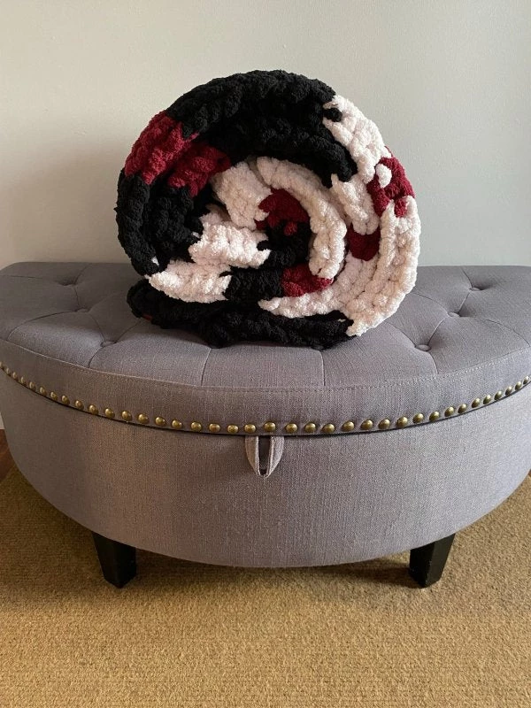 Machine washable on delicate cycle, low heat tumble or lay flat to dry