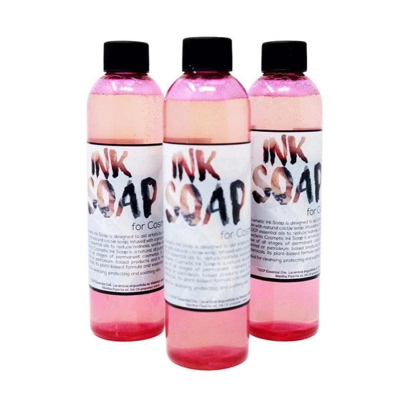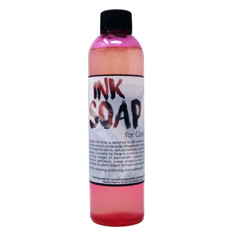 Ink Soap is an all natural, concentrated Castile soap which is used during the tattooing process to calm irritated skin, reduce redness and pain, and fight infection.