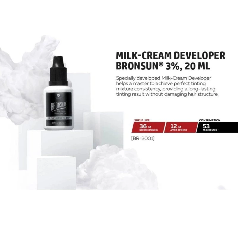 The BRONSUN® Milk Cream Developer is a specially developed oxidant, designed to create the most consistent colour while using Bronsun Lash and Brow Dye.