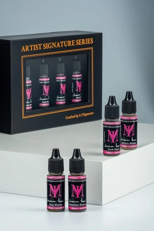 Her unique hairstroke technique with a Digital Device has earned her that Worldwide recognition. Monica chose to work with Li Pigments due to their reputation for high quality pigments that implant, heal and age with only the best results. She worked closely with the chemists at Li Pigments to create her own unique eyebrow pigment formula as well as her own unique, custom brow colors. After working and testing her pigments for over a year…Monica and Li Pigments together created what will be one of the best set of brow pigments the industry has ever seen.