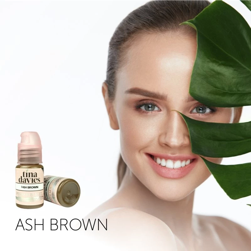 Tina Davies Ash Brown is a cool, medium-value pigment with a yellow base, resulting in a gorgeous medium ash brown colour. This ultra-concentrated formula covers old orange and red faded PMU. Amazing for your clients with fair, beige or olive skin tones.