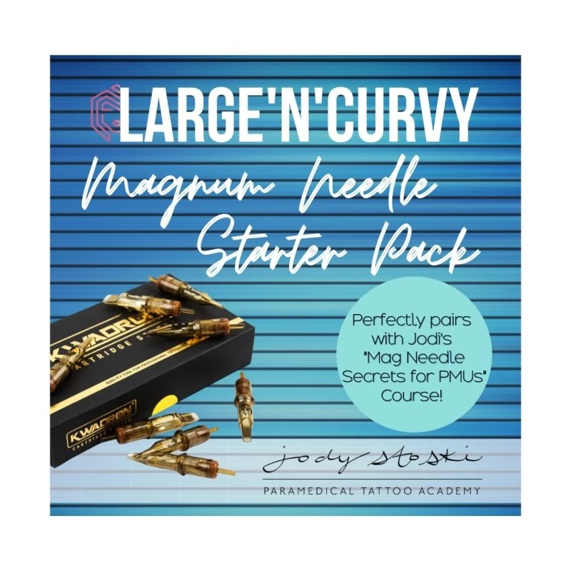 We collaborated with Paramedical Educator & PMU Expert Jody Stoski to create this thoughtful introductory starter pack of 20 assorted large curved magnum needles so you can explore larger needles without having to commit to a full box of 1 sized needle!